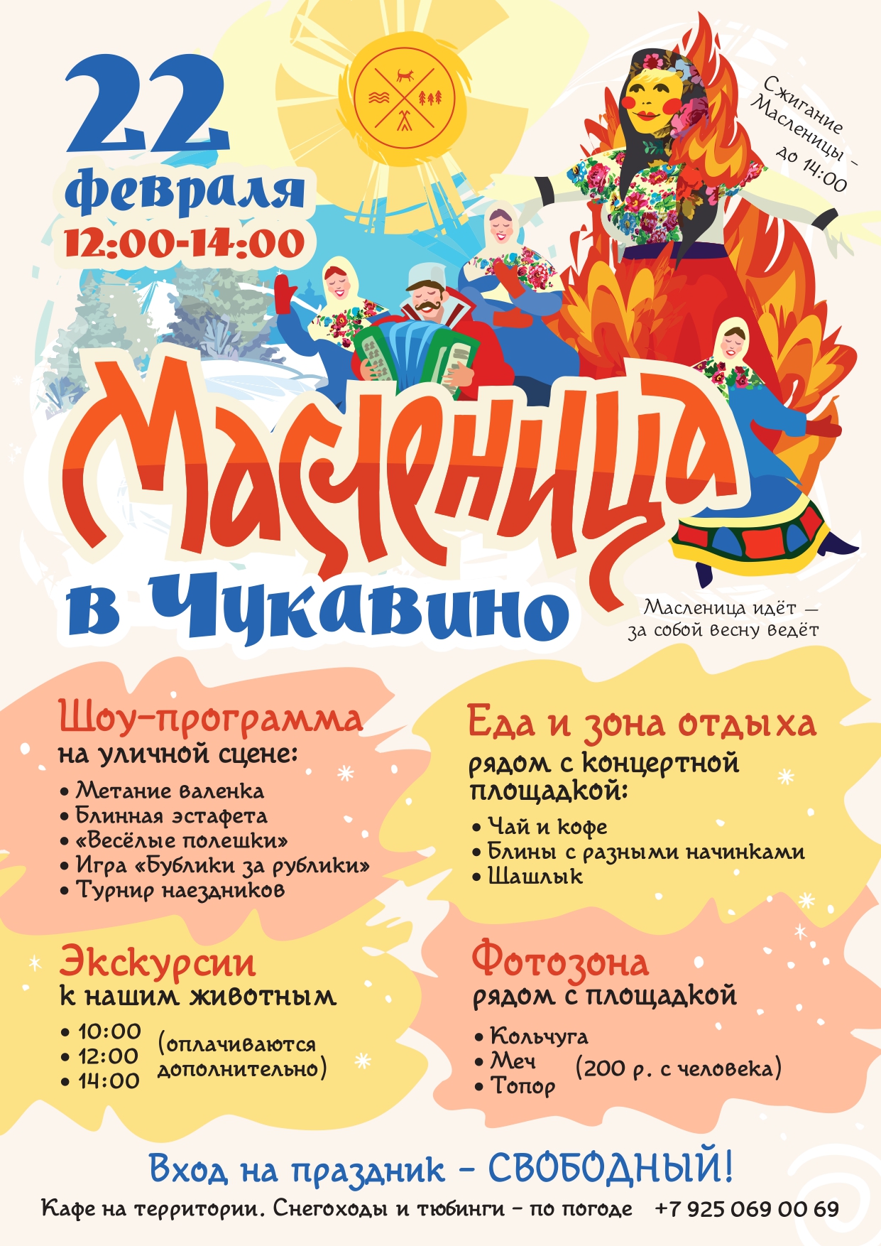 Только в выходные дни - катания на снегоходах (пассажиром), расписание уточняйте накануне.